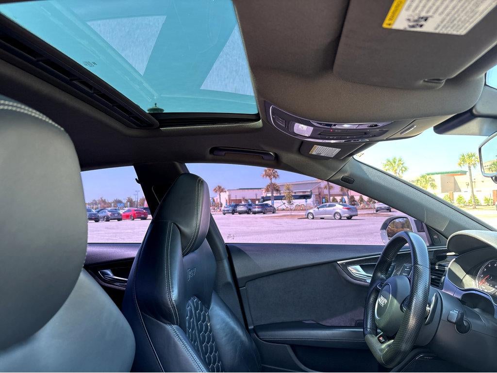 Vaden is pleased to offer this 2017 Audi RS 7 4.0T Prestige with Leather... Beautifully equipped with 14 Speakers, 4-Wheel Disc Brakes, ABS brakes, Adaptive suspension, Air Conditioning, Alloy wheels, AM/FM radio: SiriusXM, Anti-whiplash front head restraints, Audi Smartphone Interface, Auto tilt-away steering wheel, Auto-dimming door mirrors, Auto-dimming Rear-View mirror, Auto-leveling suspension, Automatic temperature control, BOSE Surround Sound System, Brake assist, Bumpers: body-color, CD player, Compass, Delay-off headlights, Door auto-latch, Driver door bin, Driver vanity mirror, Dual front impact airbags, Dual front side impact airbags, DVD-Audio, Electronic Stability Control, Exterior Parking Camera Rear, Four wheel independent suspension, Front anti-roll bar, Front Bucket Seats, Front Center Armrest w/Storage, Front dual zone A/C, Front fog lights, Front reading lights, Garage door transmitter: HomeLink, Heads-Up Display, Heated door mirrors, Heated front seats, Heated RS Sport Bucket Seats, Illuminated entry, Knee airbag, Leather Shift Knob, Leather steering wheel, Low tire pressure warning, Memory seat, Navigation System, Occupant sensing airbag, Outside temperature display, Overhead airbag, Overhead console, Panic alarm, Passenger door bin, Passenger vanity mirror, Power door mirrors, Power driver seat, Power Liftgate, Power moonroof, Power passenger seat, Power steering, Power windows, Radio data system, Radio: Audi MMI Navigation Plus w/AM/FM, Rain sensing wipers, Rear air conditioning, Rear anti-roll bar, Rear dual zone A/C, Rear fog lights, Rear reading lights, Rear seat center armrest, Rear window defroster, Remote keyless entry, Security system, Speed control, Speed-sensing steering, Speed-Sensitive Wipers, Spoiler, Sport steering wheel, Steering wheel memory, Steering wheel mounted audio controls, Tachometer, Telescoping steering wheel, Tilt steering wheel, Traction control, Trip computer, Turn signal indicator mirrors, Valcona Leather Seating Surfaces, Variably intermittent wipers, and Wheels: 9.0" x 20" Forged 7-Twin Spoke!