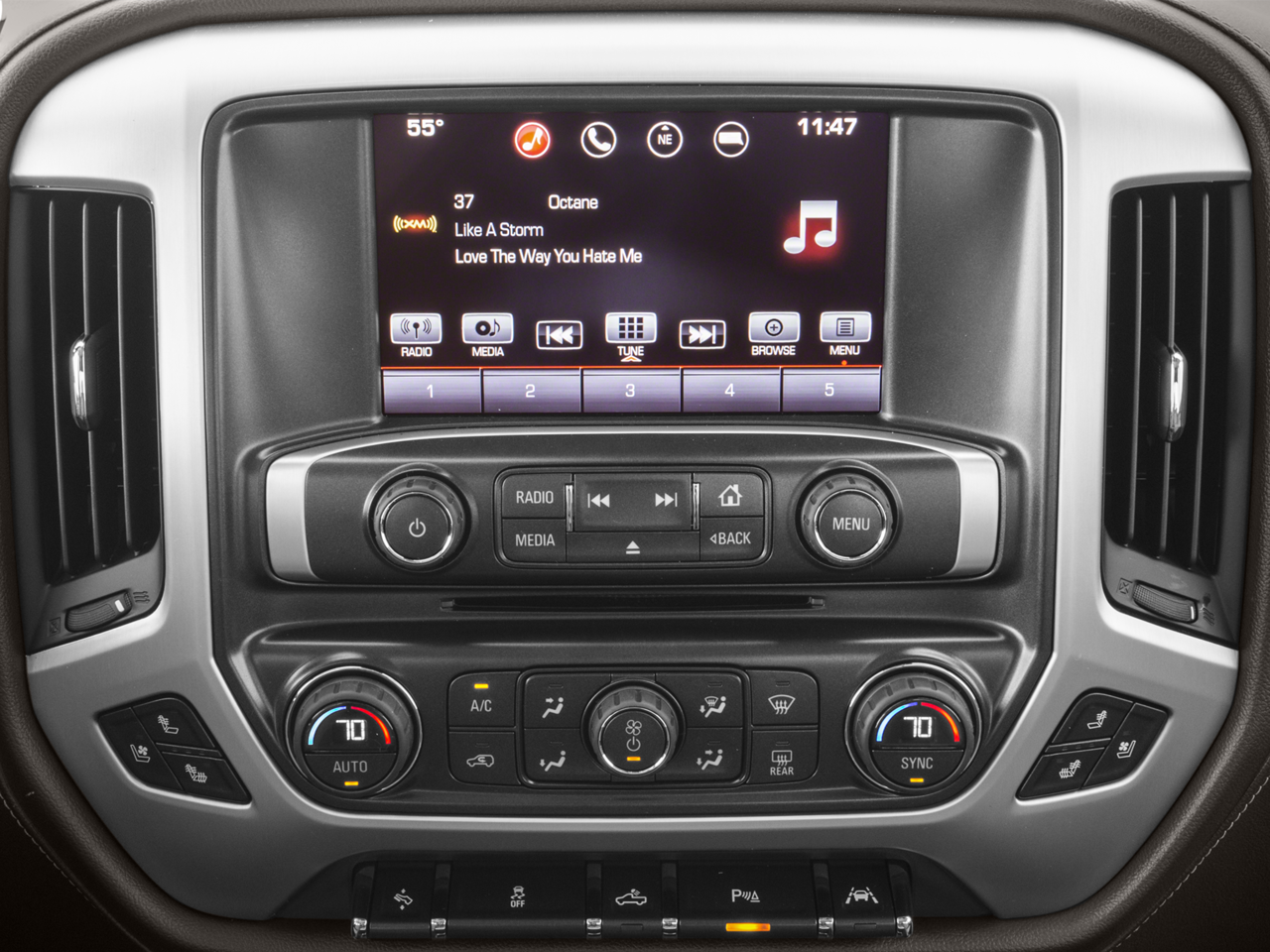 15/21 City/Highway MPG Recent Arrival!Vaden is pleased to offer this Onyx Black 2017 GMC Sierra 1500 SLT with Jet Black/Spice Red All-Terrain Leather... Beautifully equipped with All Terrain SLT Premium Package (4' Round Black Tubular Assist Steps (LPO), High-Performance LED Headlamps, Leather Wrapped Heated Steering Wheel, Power Sliding Rear Window w/Defogger, Ultrasonic Front & Rear Park Assist, and Wheels: 20' x 9' Bright Machined Alum.), All-Terrain Package (10-Way Power Driver's Seat Adjuster, All-Weather Floor Liner (LPO), Black Mirror Caps, Body Color Bodyside Moldings, Body Color Door Handles, Body Color Lower Front Bumper, Body Color Rear Bumper w/Cornersteps, Floor Mounted Console, Front Full Feature Power Reclining Bucket Seats, Heated Driver & Front Passenger Seats, Spray-On Pickup Box Bed Liner w/GMC Logo, Wheels: 18' x 8.5' Bright Machined Aluminum, and Wireless Charging), Off-Road Suspension Package (Hill Descent Control), Preferred Equipment Group 4SA (110-Volt AC Power Outlet, 150 Amp Alternator, 1st & 2nd Row Color-Keyed Carpeted Floor Mats, 2-Speed Active Electronic AutoTrac Transfer Case, 4.2' Diagonal Color Display Driver Info Center, Auto-Dimming Inside Rear-View Mirror, Auxiliary External Transmission Oil Cooler, Chrome Bodyside Moldings, Chrome Door Handles, Chrome Mirror Caps, Color-Keyed Carpeting, Deep-Tinted Glass, Driver & Front Passenger Illuminated Vanity Mirrors, Dual-Zone Automatic Climate Control, Electric Rear-Window Defogger, EZ Lift & Lower Tailgate, Front Frame-Mounted Black Recovery Hooks, Heavy-Duty Rear Locking Differential, Leather Wrapped Steering Wheel w/Cruise Controls, LED Cargo Box Lighting, LED Tailamps w/Signature, Manual Tilt/Telescoping Steering Column, OnStar 3 Month Guidance Plan, OnStar w/4G LTE, Power Adjustable Pedals, Power Folding & Adjustable Heated Outside Mirrors, Power Windows w/Driver Express Up & Down, Rear 60/40 Folding Bench Seat (Folds Up), Rear Vision Camera, Rear Wheelhouse Liners, Remote Keyless Entry, Remote Vehicle Starter System, Single Slot CD/MP3 Player, Steering Wheel Audio Controls, Theft Deterrent System (Unauthorized Entry), Thin Profile LED Fog Lamps, and Universal Home Remote), Trailering Equipment, 8-Speed Automatic with Overdrive, 4WD, Jet Black/Spice Red All-Terrain Leather, 4-Wheel Disc Brakes, 40/20/40 Front Split Bench Seat, 6 Speakers, 6-Speaker Audio System, ABS brakes, Adjustable pedals, Air Conditioning, Alloy wheels, AM/FM radio, Auto-dimming door mirrors, Auto-dimming Rear-View mirror, Automatic temperature control, Bodyside moldings, Brake assist, Bumpers: chrome, CD player, Compass, Delay-off headlights, Driver door bin, Driver vanity mirror, Dual front impact airbags, Dual front side impact airbags, Electronic Stability Control, Emergency communication system: OnStar Guidance, Exterior Parking Camera Rear, Front anti-roll bar, Front Center Armrest w/Storage, Front dual zone A/C, Front fog lights, Front License Plate Kit, Front reading lights, Front wheel independent suspension, Fully automatic headlights, Garage door transmitter: HomeLink, HD Radio, Heated door mirrors, Heated front seats, Heavy Duty Suspension, High-Intensity Discharge Headlights, Illuminated entry, Leather Appointed Seat Trim, Low tire pressure warning, Memory seat, Occupant sensing airbag, Outside temperature display, Overhead airbag, Overhead console, Panic alarm, Passenger door bin, Passenger vanity mirror, Power door mirrors, Power driver seat, Power passenger seat, Power steering, Power Sunroof, Power windows, Radio data system, Radio: AM/FM Stereo w/8' Diagonal Color Touch Nav., Radio: AM/FM Stereo w/8' Diagonal Color Touch Screen, Rear reading lights, Rear seat center armrest, Rear step bumper, Rear window defroster, Remote keyless entry, Security system, SiriusXM Satellite Radio, Speed control, Speed-sensing steering, Split folding rear seat, Steering wheel mounted audio controls, Tachometer, Telescoping steering wheel, Tilt steering wheel, Tractio