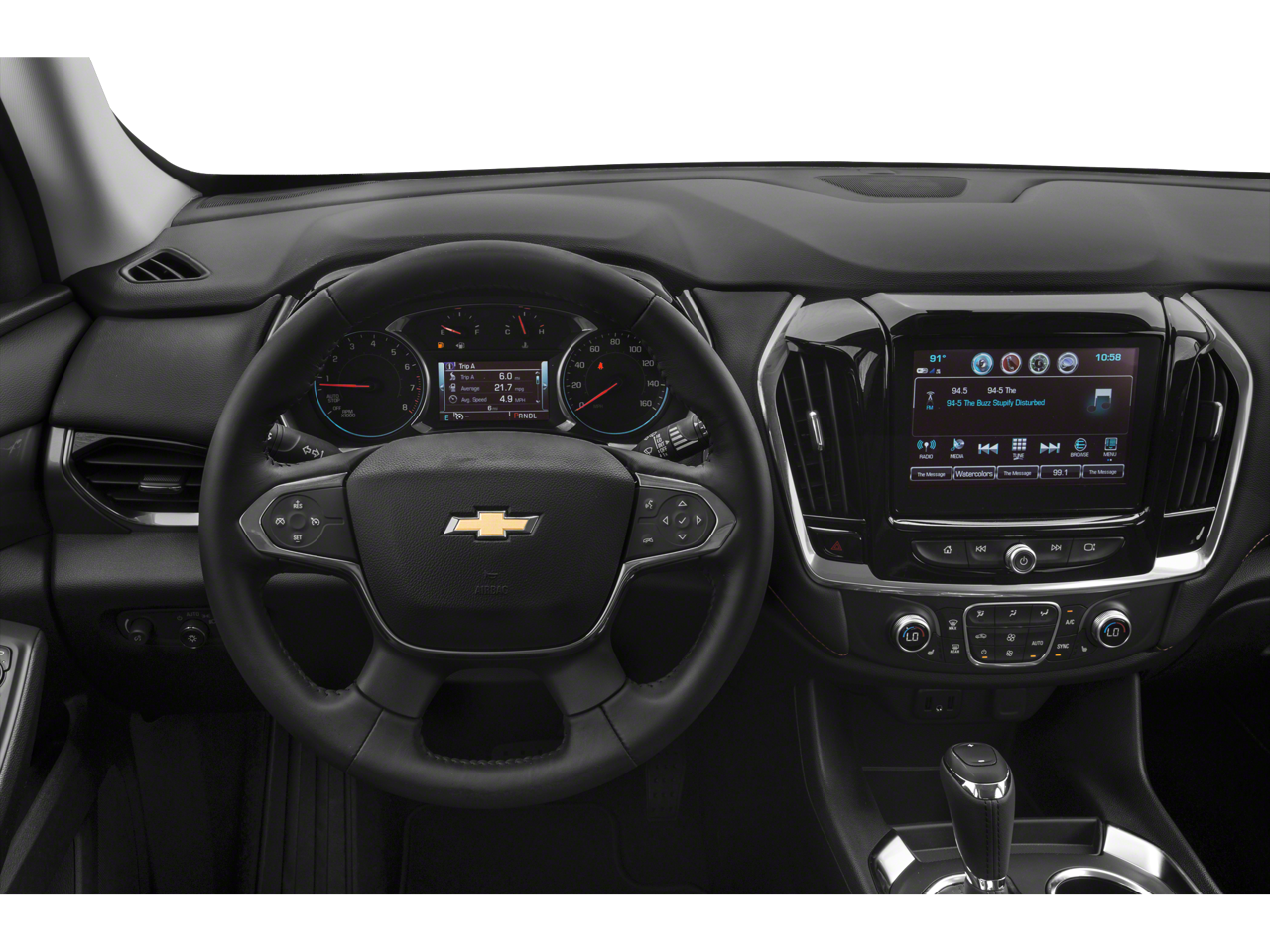 Vaden is pleased to offer this Steel Metallic 2019 Chevrolet Traverse 3LT with Leather... Beautifully equipped with LT Premium Package (120-Volt Power Outlet, Bose Premium 10-Speaker Audio System Feature, Radio: Chevrolet Infotainment AM/FM Stereo w/Navigation, Rear Camera Mirror, Surround Vision, and Wheels: 20" Machined Face Aluminum), Preferred Equipment Group 3LT, 3.49 Axle Ratio, 3rd row seats: split-bench, 4-Wheel Disc Brakes, 6 Speakers, 7-Passenger Seating (2-2-3 Seating Configuration), 8-Passenger Seating (2-3-3 Seating Configuration), ABS brakes, Air Conditioning, Alloy wheels, AM/FM radio: SiriusXM, Apple CarPlay/Android Auto, Automatic temperature control, Brake assist, Bumpers: body-color, Compass, Delay-off headlights, Driver door bin, Driver vanity mirror, Dual front impact airbags, Dual front side impact airbags, Electronic Stability Control, Emergency communication system, Four wheel independent suspension, Front anti-roll bar, Front Bucket Seats, Front Center Armrest, Front dual zone A/C, Front fog lights, Front reading lights, Fully automatic headlights, Garage door transmitter, Heated door mirrors, Heated front seats, High-Intensity Discharge Headlights, Illuminated entry, Leather-Appointed Seat Trim, Low tire pressure warning, Occupant sensing airbag, Outside temperature display, Overhead airbag, Overhead console, Panic alarm, Passenger door bin, Passenger vanity mirror, Power door mirrors, Power driver seat, Power Liftgate, Power passenger seat, Power steering, Power windows, Premium audio system: Chevrolet MyLink, Radio data system, Radio: Chevrolet Infotainment AM/FM w/8" Screen, Rear air conditioning, Rear anti-roll bar, Rear reading lights, Rear window defroster, Rear window wiper, Remote keyless entry, Roof rack: rails only, Security system, Speed control, Speed-sensing steering, Spoiler, Steering wheel mounted audio controls, Tachometer, Telescoping steering wheel, Tilt steering wheel, Traction control, Trip computer, Turn signal indicator mirrors, Variably intermittent wipers, Voltmeter, and Wheels: 18" Bright Silver Painted Aluminum!