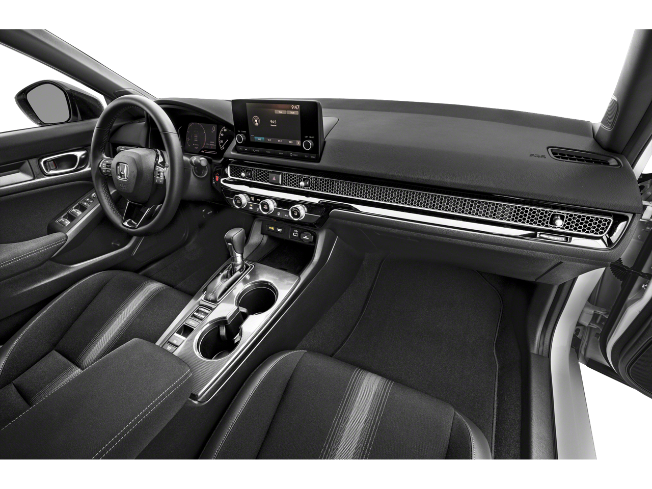 Vaden is pleased to offer this Sonic Gray Pearl 2024 Honda Civic Sport with Black Cloth... Beautifully equipped with Black w/Cloth Seating Surfaces, 4-Wheel Disc Brakes, 8 Speakers, ABS brakes, Adaptive Cruise Control: Adaptive Cruise Control (ACC) with Low-Speed Follow, Air Conditioning, Alloy wheels, AM/FM radio, Apple CarPlay/Android Auto, Auto High-beam Headlights, Automatic temperature control, Brake assist, Bumpers: body-color, Cloth/Leatherette Seating Surfaces, Delay-off headlights, Driver door bin, Driver vanity mirror, Dual front impact airbags, Dual front side impact airbags, Electronic Stability Control, Emergency communication system: HondaLink, Exterior Parking Camera Rear, Four wheel independent suspension, Front anti-roll bar, Front Bucket Seats, Front Center Armrest, Front reading lights, Fully automatic headlights, Illuminated entry, Knee airbag, Leather Shift Knob, Leather steering wheel, Low tire pressure warning, Occupant sensing airbag, Outside temperature display, Overhead airbag, Panic alarm, Passenger door bin, Passenger vanity mirror, Power door mirrors, Power steering, Power windows, Radio data system, Radio: 180-Watt Audio System, Rear anti-roll bar, Rear side impact airbag, Rear window defroster, Remote keyless entry, Security system, Speed control, Speed-sensing steering, Steering wheel mounted audio controls, Tachometer, Telescoping steering wheel, Tilt steering wheel, Traction control, Trip computer, and Wheels: 18" Gloss Black Alloy! ONE OWNER, CLEAN CARFAX HISTORY, PUSH BUTTON STARTER, REMOTE KEYLESS ENTRY, Bluetooth®, BACKUP CAMERA, POWER MIRROR PACKAGE, PREMIUM WHEELS, Black w/Cloth Seating Surfaces.