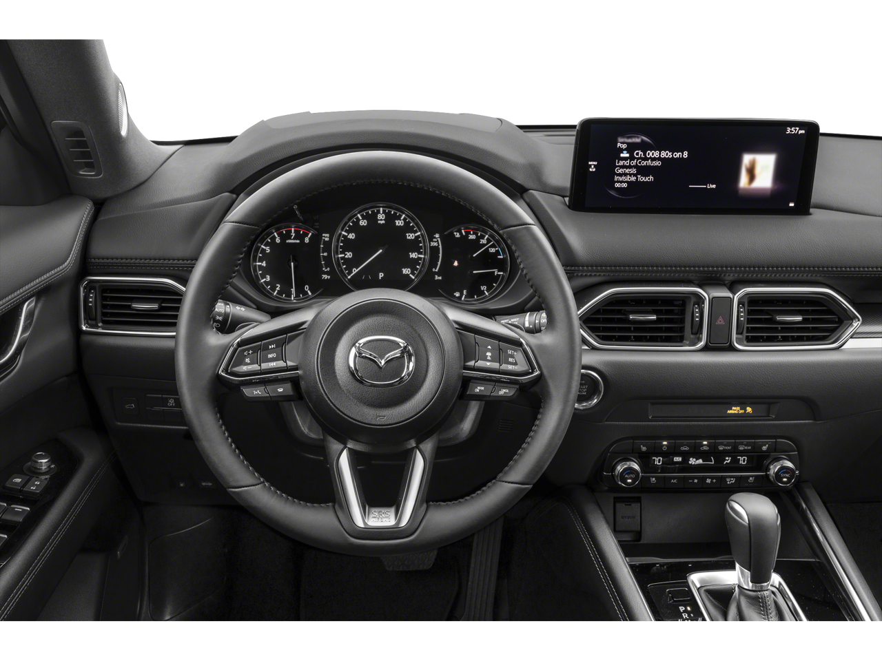 Step inside the CX-5 and you'll be greeted by a wealth of premium features, including a Heads-Up Display, a 10-speaker premium audio system, and a state-of-the-art infotainment system with voice command and seamless smartphone integration. The heated and ventilated front seats, along with the power driver's seat and memory function, ensure unparalleled comfort and convenience.