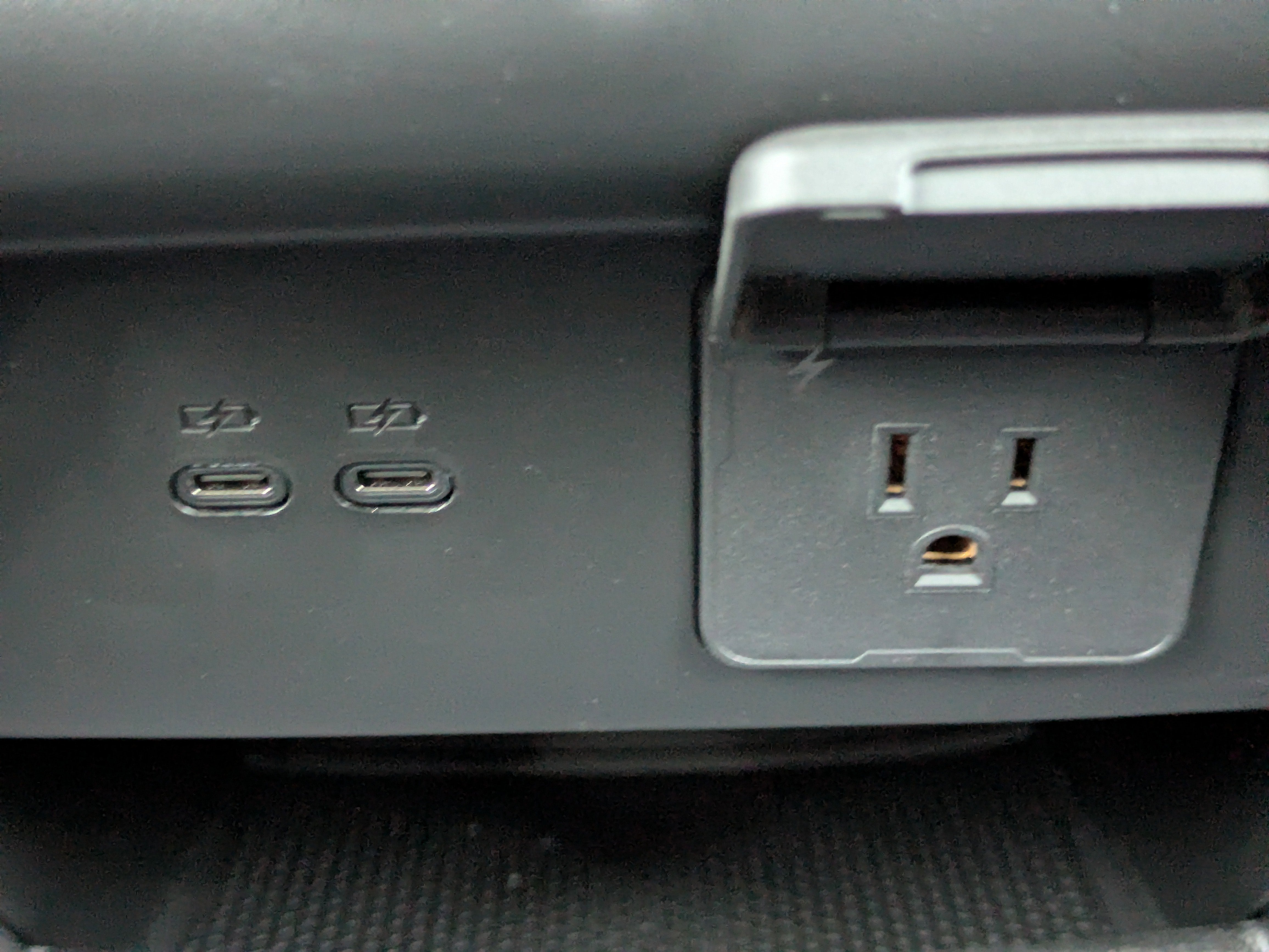 - Power outlet, 120-volt, located on the rear of center console